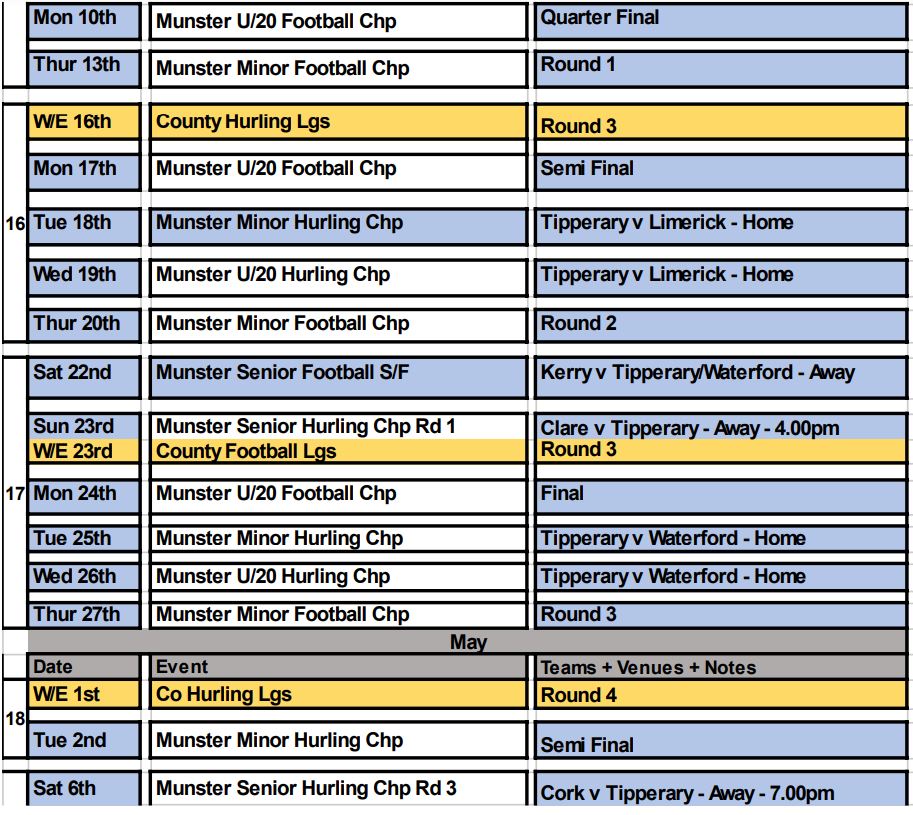 Web Tipperary Gaa Have Released Their Fixtures Calendar For 2024.